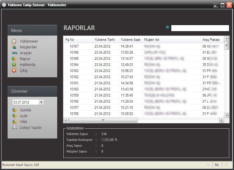 Firmanın müşterisi olan diğer firmalar adına yaptığı yükleme bilgilerini, ( yükleme durumu, tonaj, şöför bilgileri vb.) girdikten sonra müşterilerin Firma web sitesindeki online takip sisteminden bu bilgileri görüntüleyebildiği bir sistemdir.
