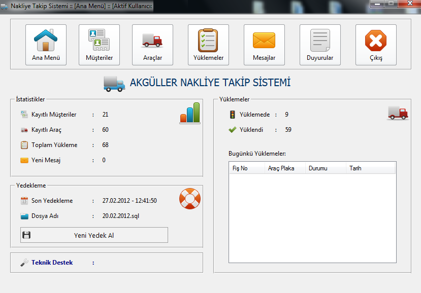 - Firmanın yükleme ve yükleme takip işleri için kullanılmaktadır.